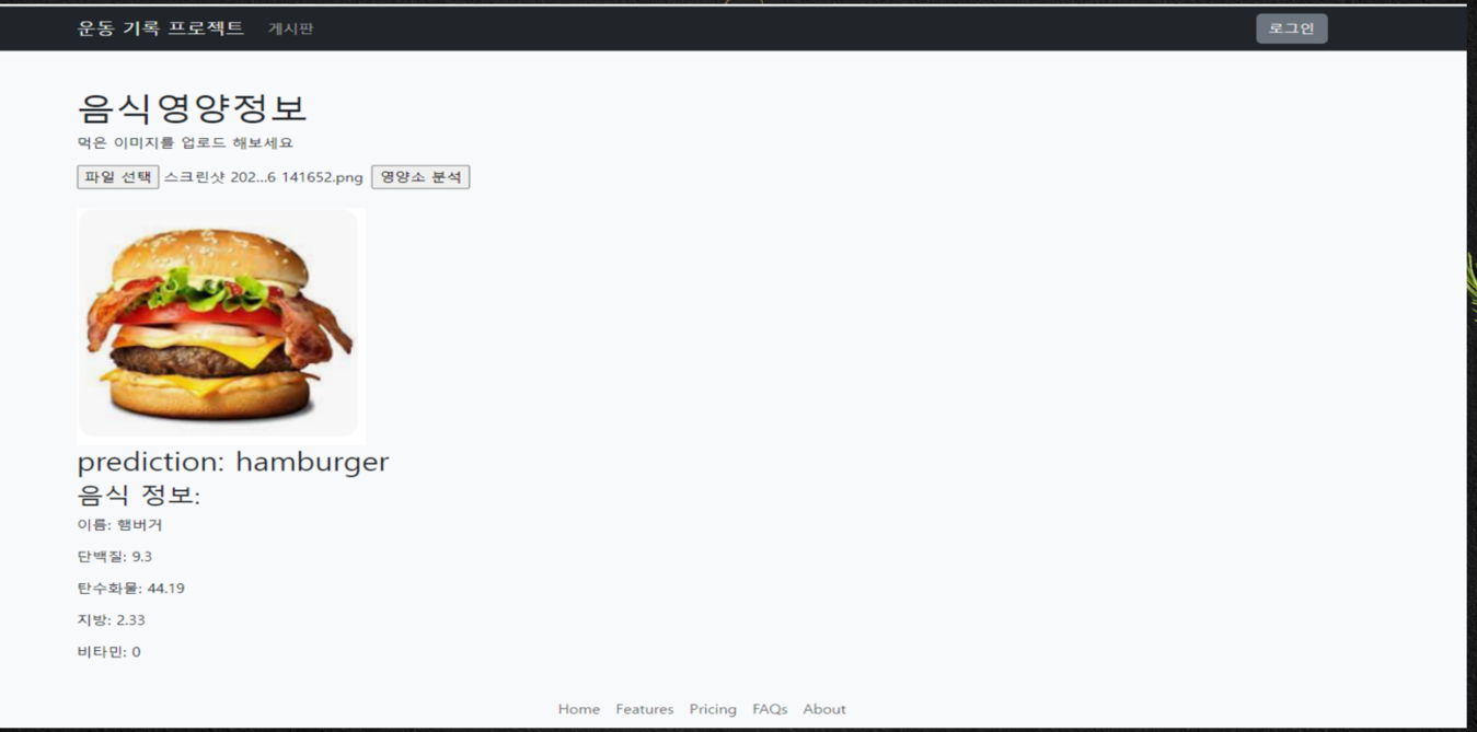 프로젝트 목표: 음식 사진을 upload하면 모델을 통해 음식 분류 후 해당 음식 정보 반환