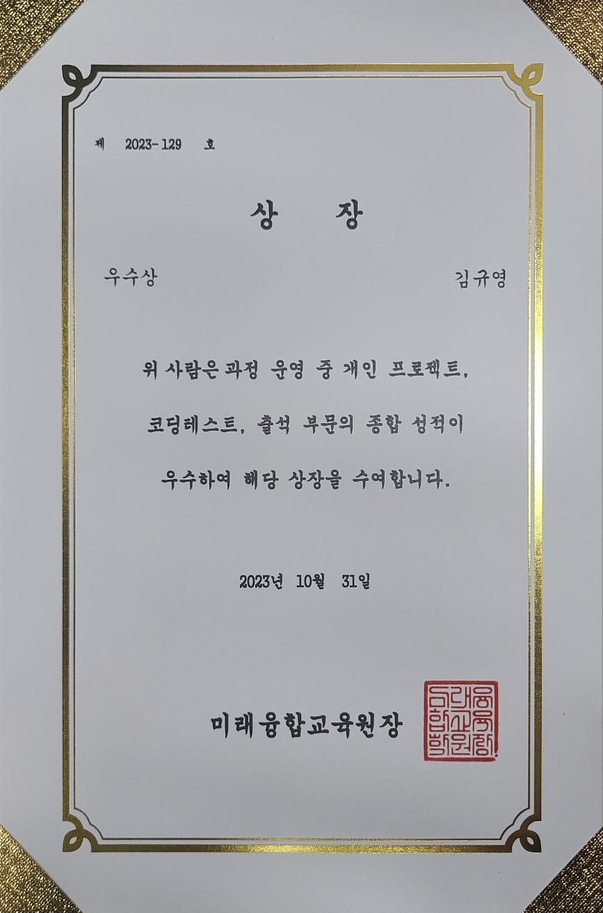 화합과 소통을 바탕으로 주변에 긍정적인 영향을 끼치는 개발자가 되겠습니다.